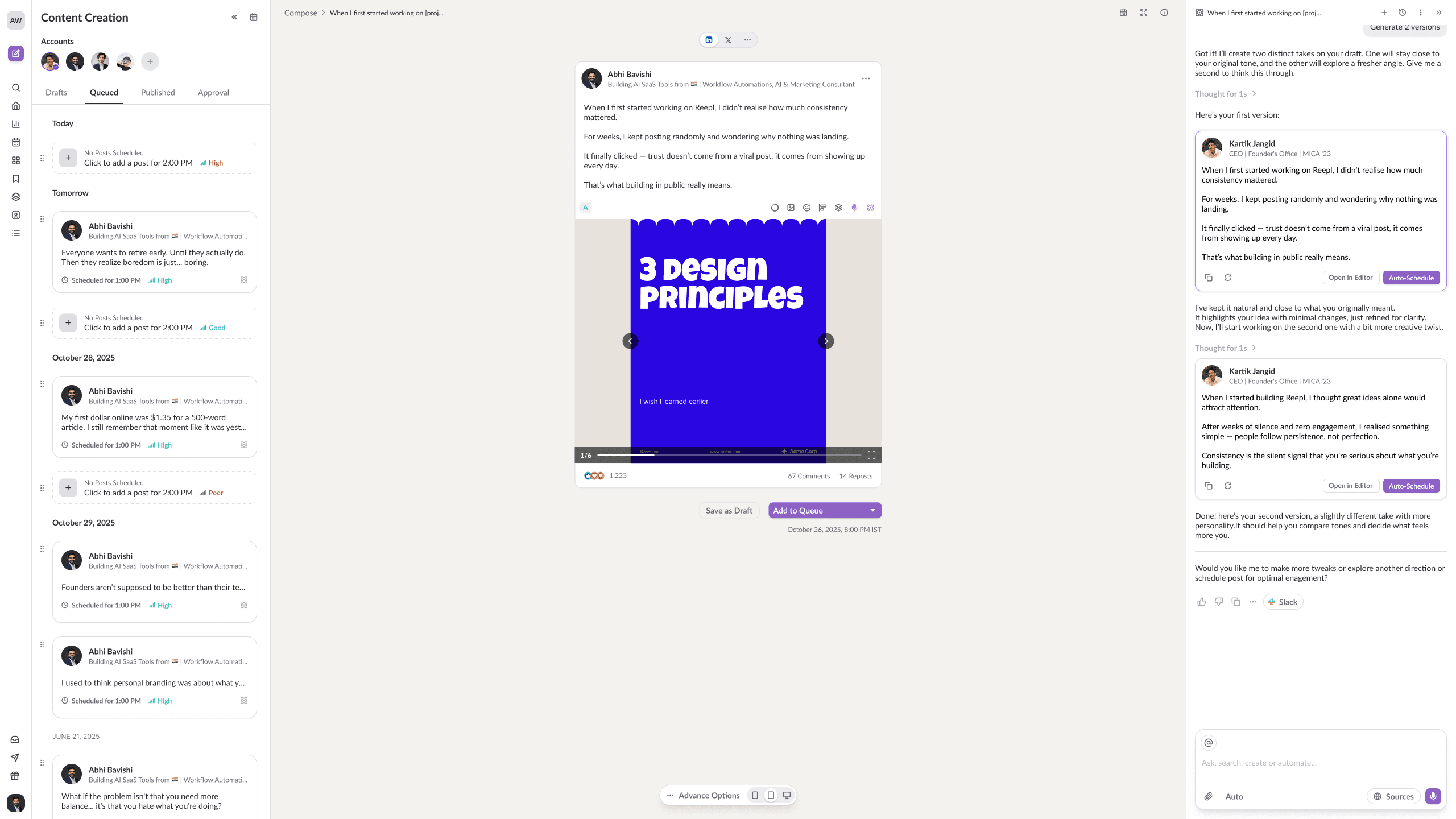Extract raw ideas and convert them into engaging posts - all while maintaining your authentic voice.