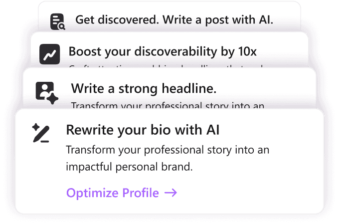 Get AI suggestions to make your LinkedIn profile stand out and attract more opportunities.