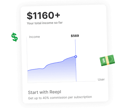 Join Reepl's affiliate program. Earn up to 40% commissions on every referral for 12 months.