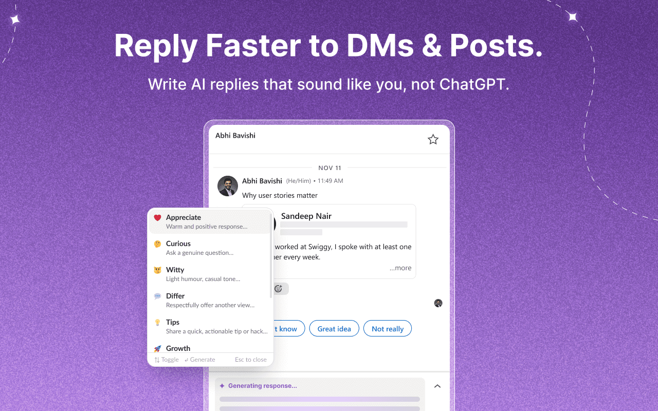 Your native LinkedIn co-pilot that helps you create, engage & prospect better - without ever leaving LinkedIn.