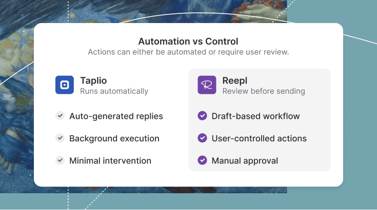 Taplio automates actions on your LinkedIn. Reepl never does.
