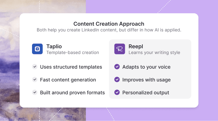 Reepl and Taplio both create LinkedIn content. But they treat AI and your account activity very differently.