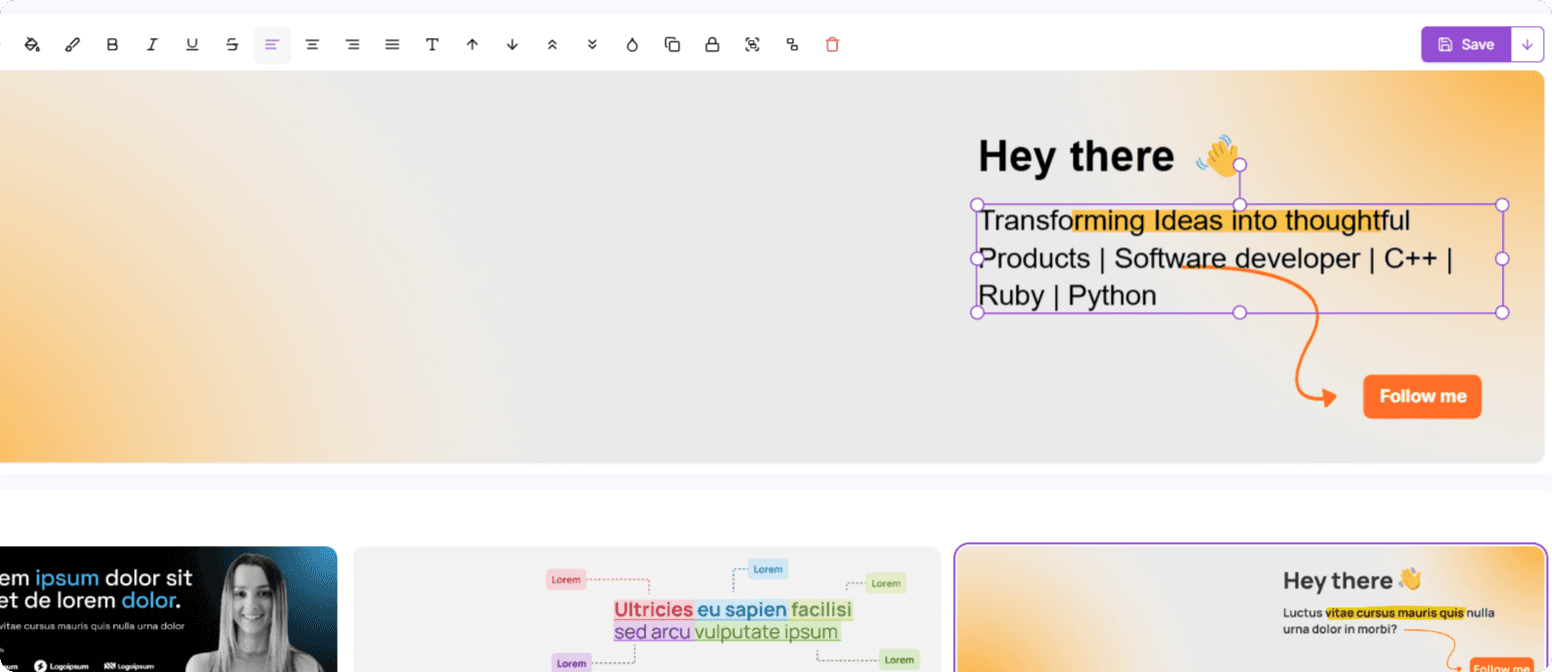 Our AI handles all the design decisions for you, and gives you a professional-looking banner instantly. We also give you the flexibility to fine-tune the design and download the banner image in a single-click. Zero design skills needed.