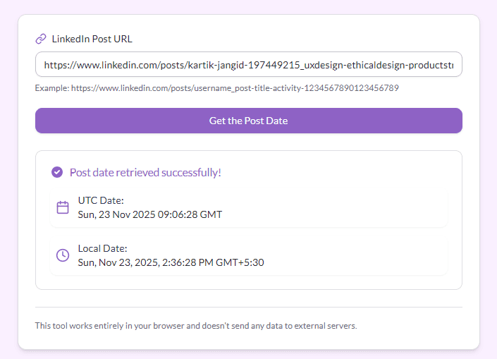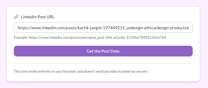 Enter a LinkedIn post URL to extract its original creation date and time