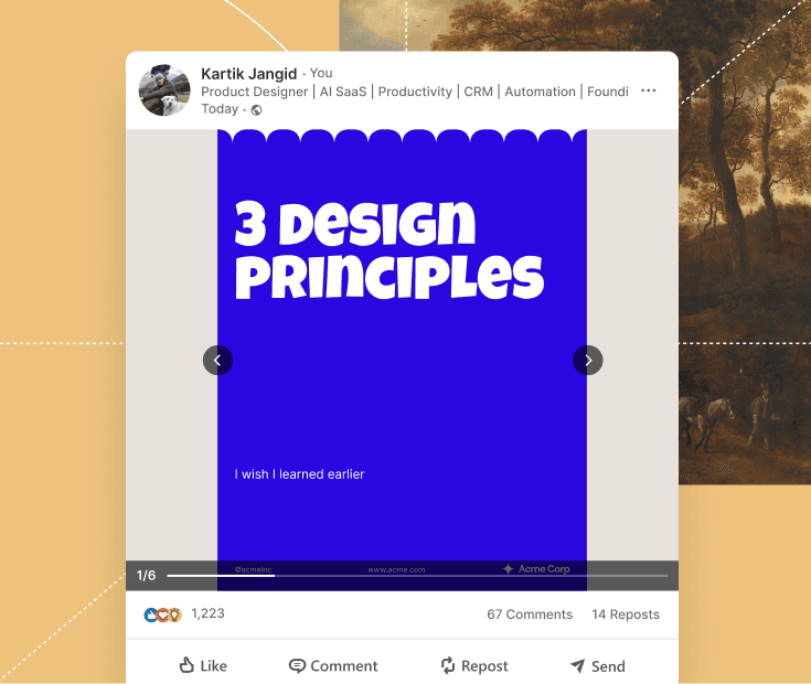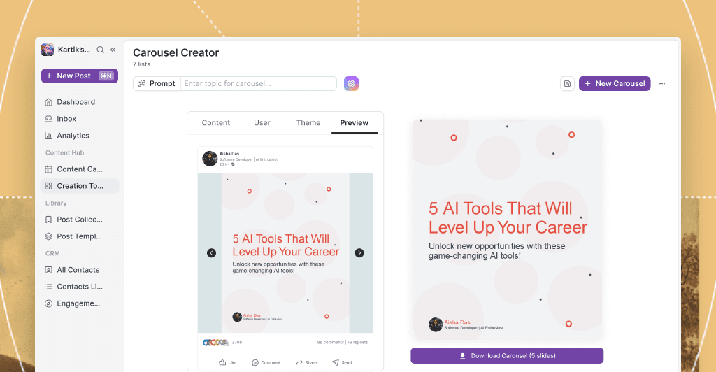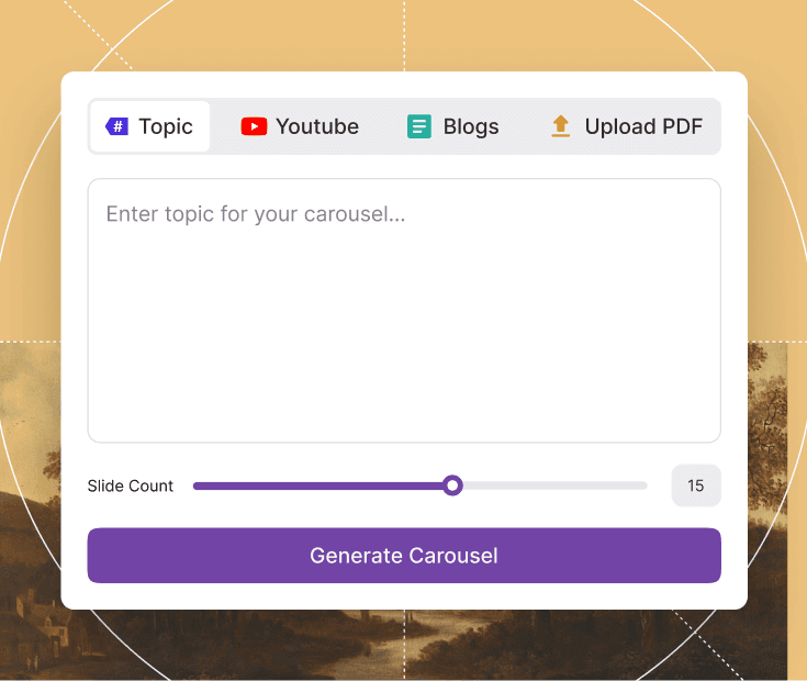 Turn a YouTube video, blog post, or PDF into a ready-to-publish carousel.