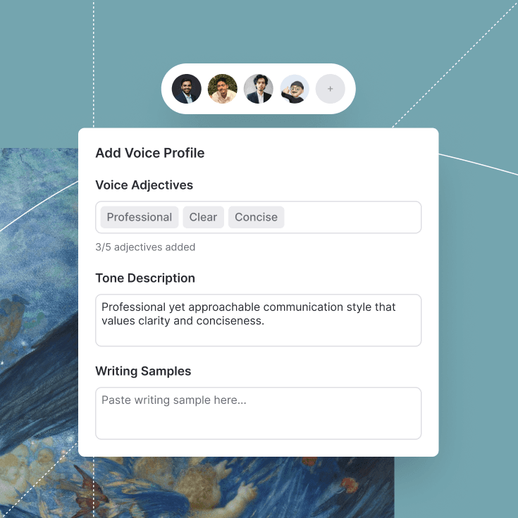 Keep your team aligned without the back-and-forth. Share drafts, collaborate on content, and maintain a consistent brand voice.