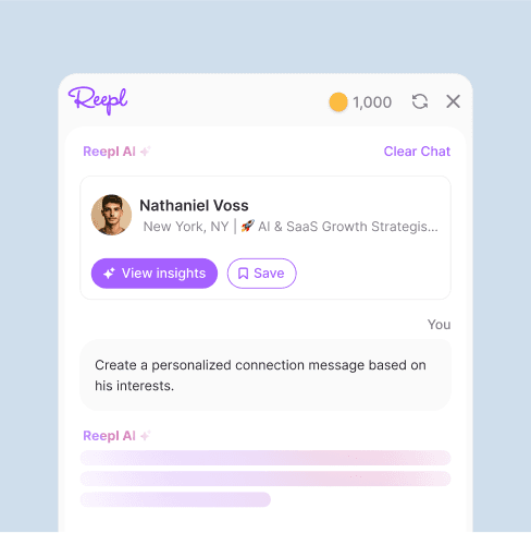 Reepl is a non-automated assistant that's designed to emulate human-like behaviour. You review and manually send each message. The extension works within your browser without accessing any external inbox, keeping your account secure.