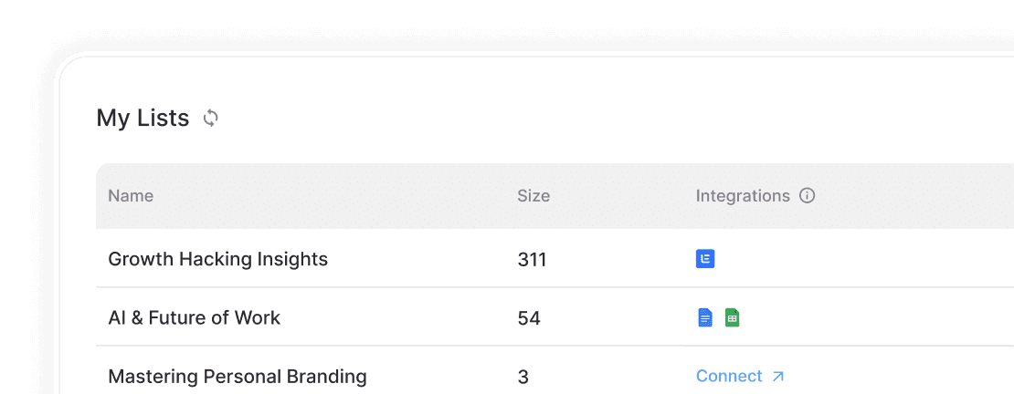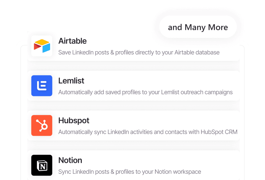 Seamlessly integrate with your favorite CRM tools and keep LinkedIn profile data updated automatically—no manual entry required.