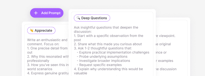 Monitor your commenting activity and build engagement streaks. Set daily goals & increase your LinkedIn presence through consistent interactions.
